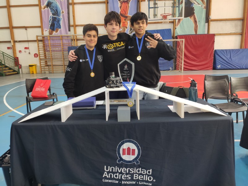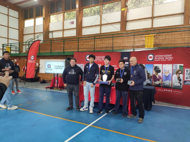 El equipo conformado por los estudiantes Nicolás Salinas, Ignacio Guzmán y Pedro Gallardo, junto a su profesor guía Lester Arias, representó con entusiasmo a nuestro colegio para conseguir este destacado logro.