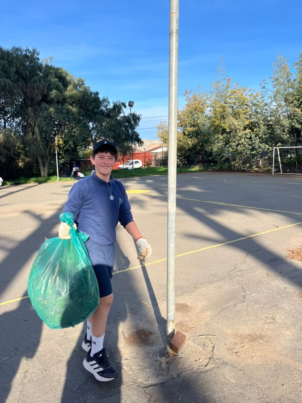 El grupo pre-juvenil de 5º y 6º básico, realizaron el pasado martes 12 agosto una acción solidaria en la parroquia Jesucristo Misioneros de Reñaca Alto. Los trabajos consistieron en limpiar y desmalezar el borde la cancha.