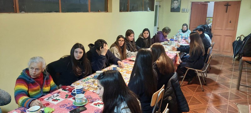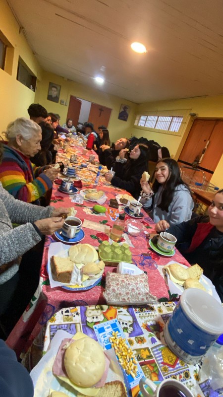 Con mucha alegría a pesar de la lluvia, el jueves pasado las Comunidades de Pastoral de III° medio se encontraron con dos grupos de adultos mayores en las capillas “María Madre Admirable”, en el paradero 8 de Reñaca Alto, y en la capilla “Jesús Amigo de todos”, de Villa Oriente.