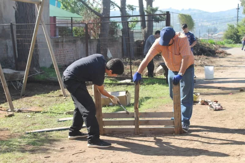 “Fue una experiencia muy linda, yo estuve pintando la sacristía de una capilla. Es gratificante ver que uno está ayudando a mejorar los espacios de la comunidad de Reñaca Alto, y que ahora pueden ocupar un lugar que antes no tenían. Me gusta también que uno puede compartir con compañeros de otras generaciones. De todas maneras iría de nuevo”. Gabriela Devoto (III° medio A), equipo de Construcción.