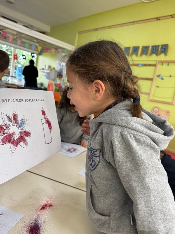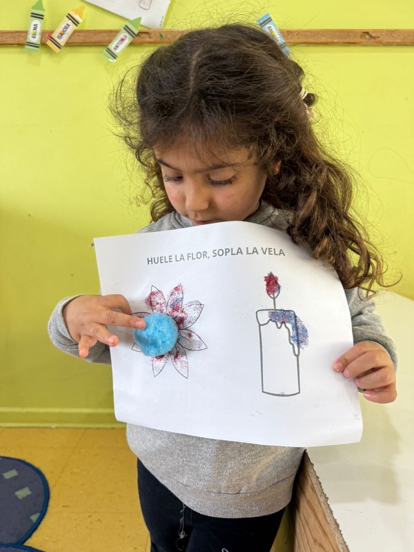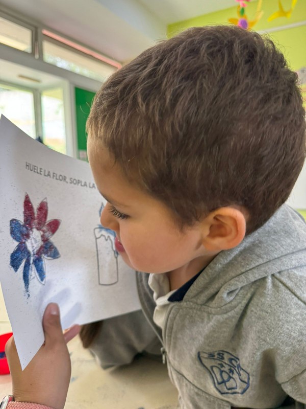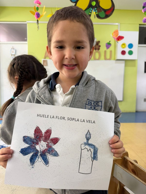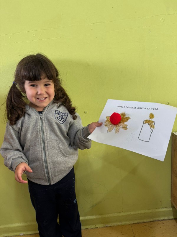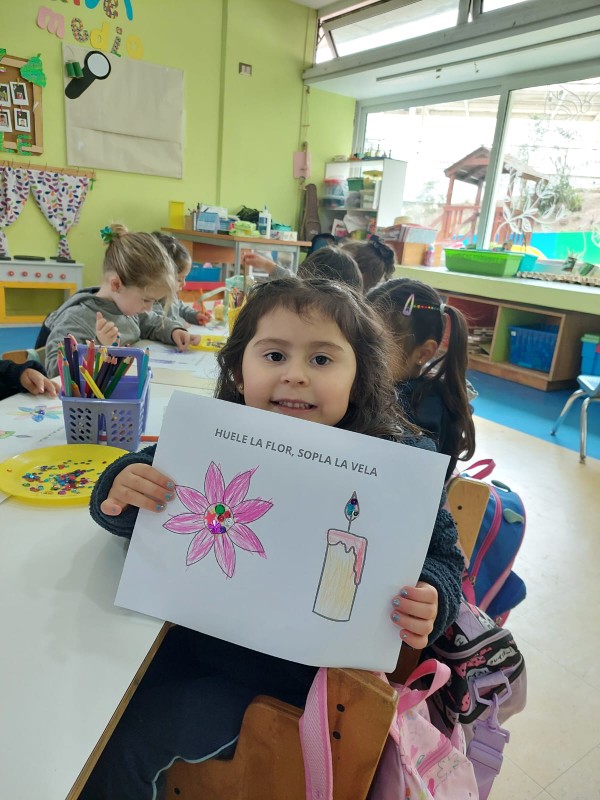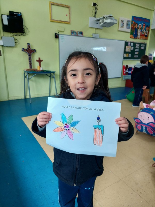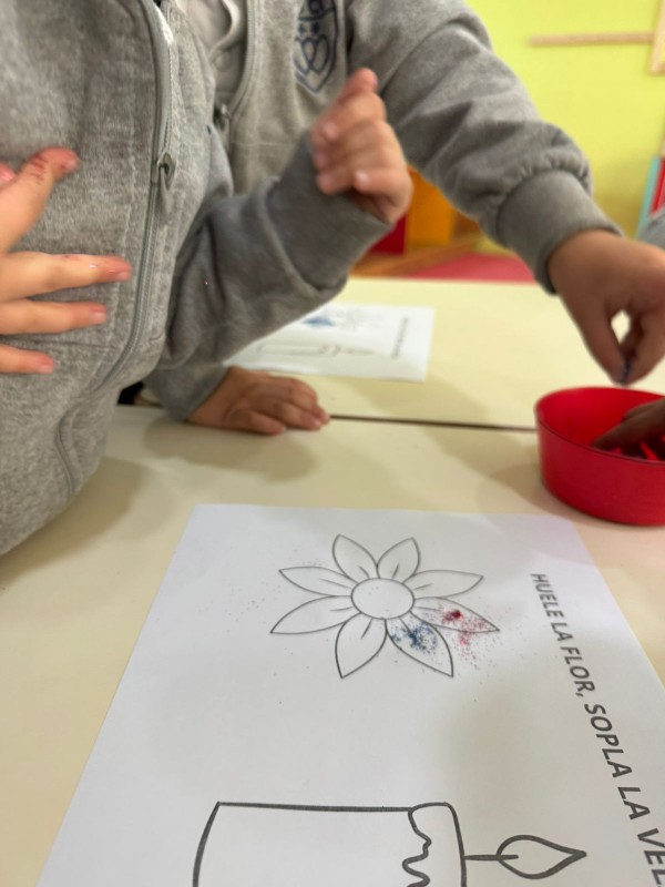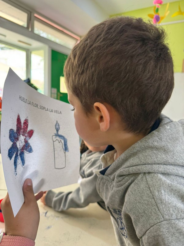 A través del juego “Sopla la vela y huele la flor”, practicaron cómo inhalar profundo y exhalar suavemente, favoreciendo la calma y el autocontrol.