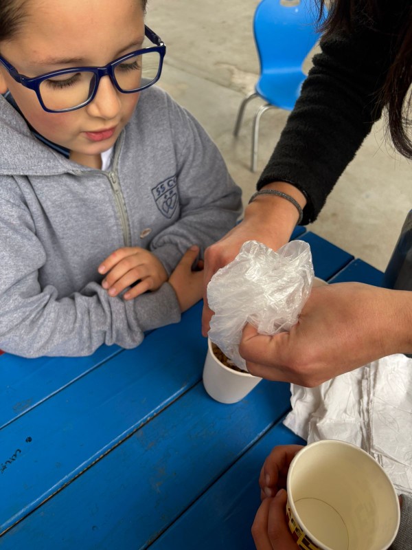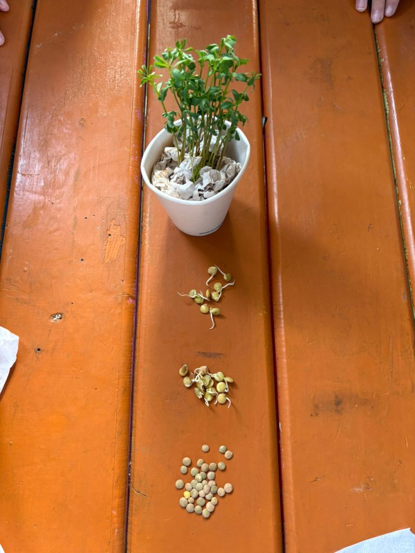 Con vasos reutilizados, algodón y mucha paciencia, aprendieron sobre las etapas de la germinación de una semilla, que en este caso fue una lenteja.