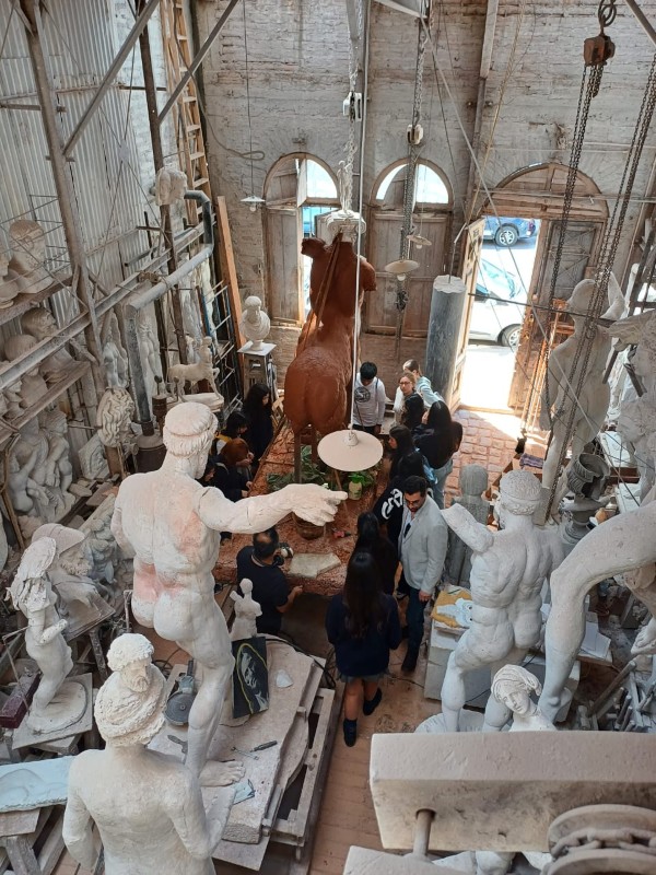 Durante la jornada, el reconocido escultor nacional Francisco Torres —autor de obras emblemáticas como el Escudo del Salón de Honor del Congreso Nacional y el Monumento al Salto de Equitación de Alberto Larraguibel en Viña del Mar— junto a su equipo, Francisco Contreras y Jordan Cabello, compartió el proceso creativo y técnico detrás de la escultura clásica.
