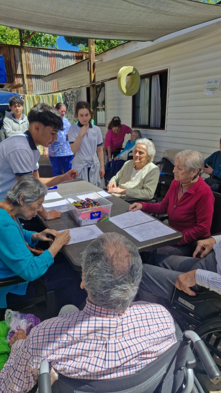 Una emotiva tarde vivieron los alumnos/as de I° medio durante su visita al Hogar de Adultos Mayores Lily en Viña del Mar, como parte de un proyecto de la asignatura de Religión.